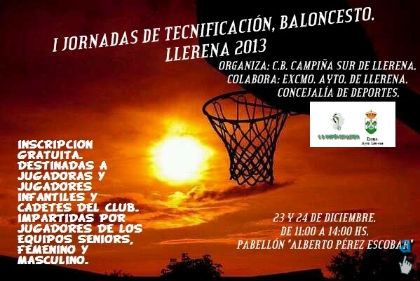 El C.B. CAMPIÑA SUR DE LLERENA, con la colaboración del Excelentísimo Ayuntamiento de Llerena y su Concejalía de Deportes, organiza las I JORNADAS DE TECNIFICACIÓN. Dichas jornadas están dirigidas a jugadoras y jugadores infantiles y cadetes del club. Están coordinadas por Enrique Freire y los monitores serán jugadores seniors, tanto del masculino como del femenino, del club. Entre los objetivos de estas jornadas, la convivencia e interacción entre jugadores de la base y jugadores seniors, pudiendo compartir experiencias y aprendizajes.