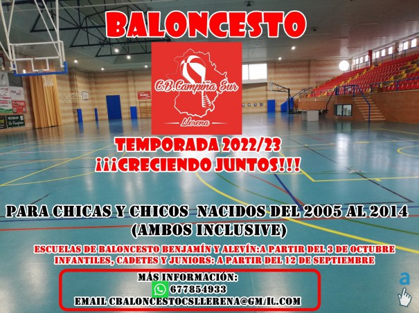 L@S NIÑ@S NACID@S EN LOS AÑOS  2005, 2006, 2007, 2008, 2009, 2010,  2011, 2012, 2013 y 2014 QUE QUIERAN JUGAR A BALONCESTO Y FORMAR PARTE DE LA FAMILIA DEL C.B. CAMPIÑA SUR DE LLERENA, PUEDEN HACERLO.