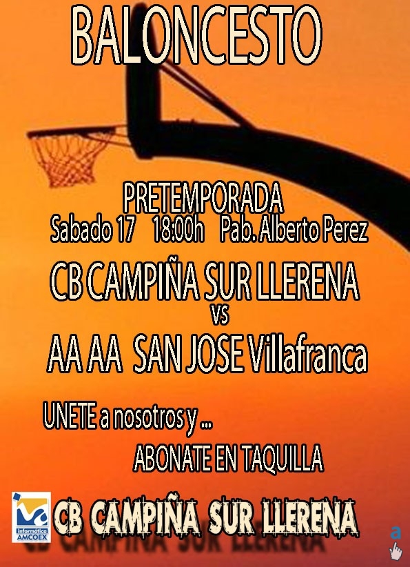 EL PROXIMO SABADO DIA 17 A LAS 18 HORAS EN EL PABELLON "ALBERTO PEREZ ESCOBAR", EL EQUIPO DE PRIMERA DIVISION INICIA SUS PARTIDOS DE PREPARACION PARA LA NUEVA TEMPORADA 2011-2012.EL EQUIPO,QUE SE COMPONE ESTE AÑO EN SU TOTALIDAD POR JUGADORES DE DIFERENTES PROMOCIONES SALIDAS DE NUESTRA CANTERA, COMIENZA UNA AVENTURA MUY ILUSIONANTE Y ESPERAZADORA A LA VEZ QUE SACRIFICADA Y DIFICIL,PARA LA QUE CON MAS FUERZA QUE NUNCA NECESITAMOS A LA AFICION LLERENENSE. EL RIVAL EN ESTE PRIMER PARTIDO DE PREPARACION SERA "AA AA SAN JOSE DE VILLAFRANCA" , UNO DE LOS MEJORES EQUIPOS DEL TROFEO DIPUTACION.
