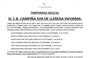 C..B. CAMPIÑA SUR DE LLERENA: COMIENZO DE LA TEMPORADA 2015/2016.