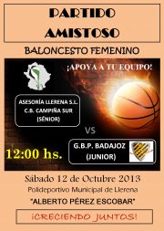 Mañana sábado 12 de octubre a las 12:00 hs., el equipo sénior femenino del "campiña" jugará partido amistoso en el Pabellón...