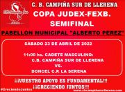 EL PRÓXIMO SÁBADO EN EL "ALBERTO PÉREZ", MAÑANA DE LA BASE, CON LA SEMIFINAL DE LA COPA JUDEX-FEXB DE NUESTRO EQUIPO CADETE. Y, NUESTRO SÉNIOR MASCULINO "AUTOTRASUR, S.L. LANDINI - JAMÓN Y SALUD", JUEGA EN BADAJOZ EL PARTIDO DE VUELTA DE LAS...