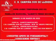 El próximo sábado 19 de marzo de 2022, juegan la COPA JUDEX-FEXB nuestros equipos cadete masculino y júnior masculino, en "LA...