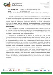 NOTA INFORMATIVA DE LA FEDERACIÓN EXTREMEÑA DE BALONCESTO: "Después de recibir el escrito de la Dirección General de...