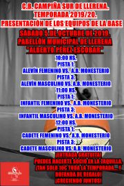 C.B. CAMPIÑA SUR DE LLERENA: EL 5 DE OCTUBRE, PRESENTACIÓN DE EQUIPOS DE LA BASE, CON LA VISITA DE A.B. MONESTERIO. Y NUESTRO CLUB HARÁ UN ACTO DE RECONOCIMIENTO Y AGRADECIMIENTO, A VALENTÍN CORTÉS Y EDUARDO RIVERO.